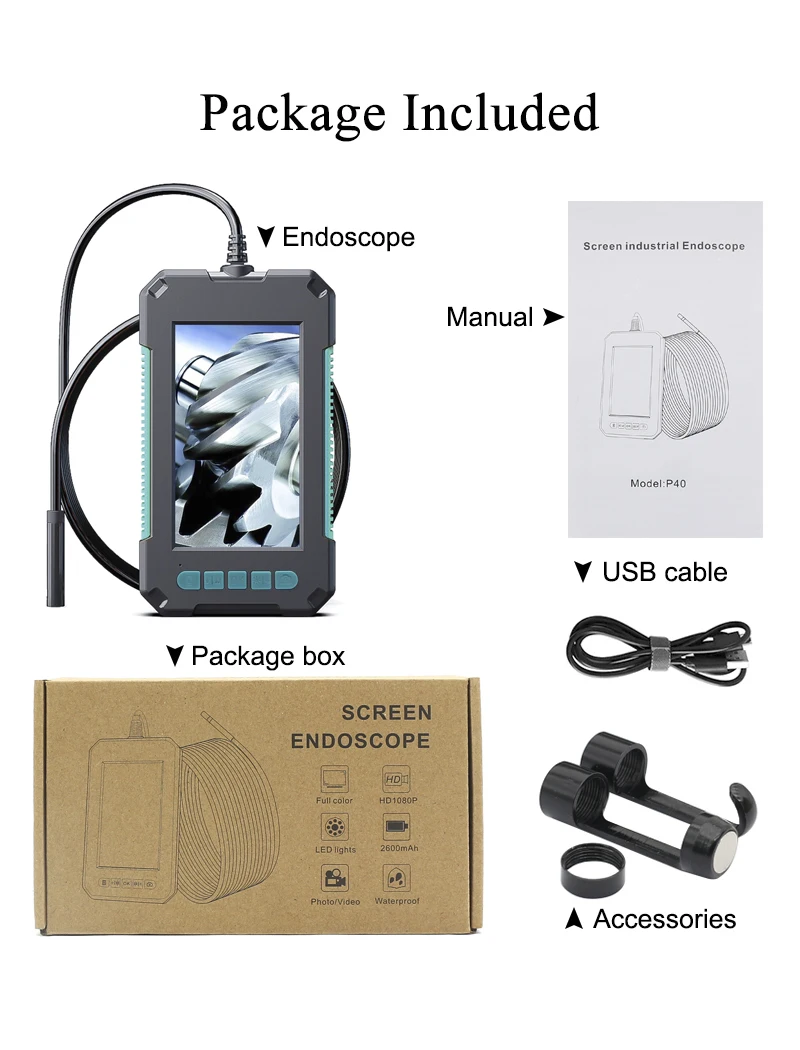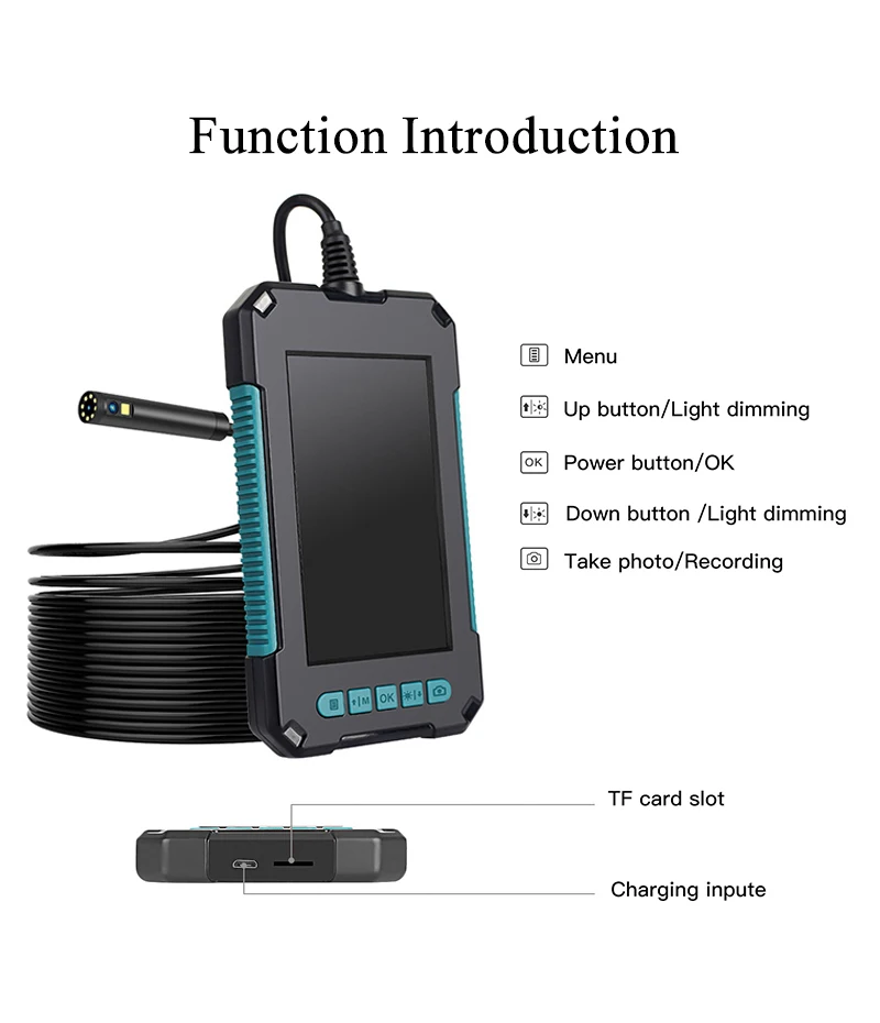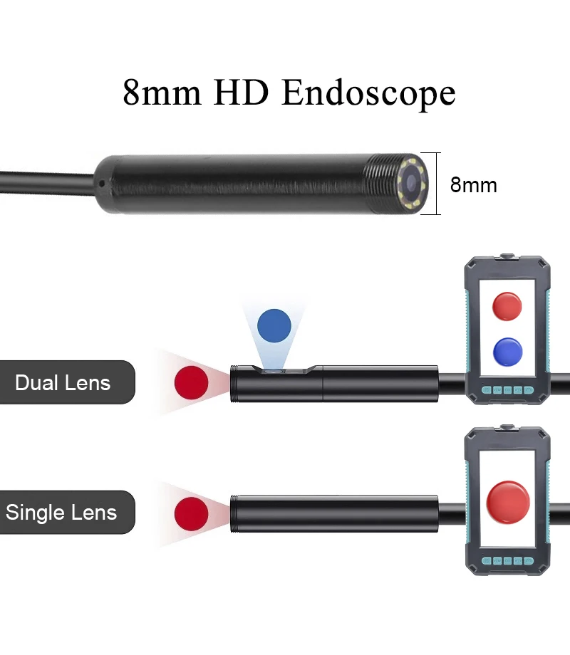 1080p hd 4.3 "tela industrial endoscópio câmera 8mm única lente dupla ip68 impermeável led borescope cabo rígido para a tubulação & inspeção do carro